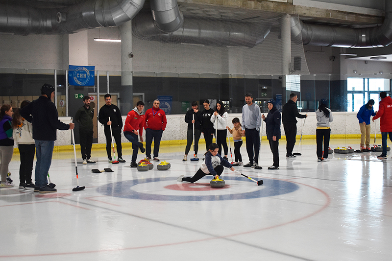 La Federación Navarra de Deportes de Invierno (FNDI) organizó el pasado sábado una jornada de promoción de Curling en la que tomaron parte una veintena de personas, todas ellas supervisadas por los monitores de la FNDI, Ismael Mingorance, vigente Campeón de España de Dobles Mixtos con Paula Oliván; y Nerea Torralba, quien, junto a sus hermanas Leyre y Elena, logró la medalla de bronce en el europeo disputado el pasado año en Ucrania.