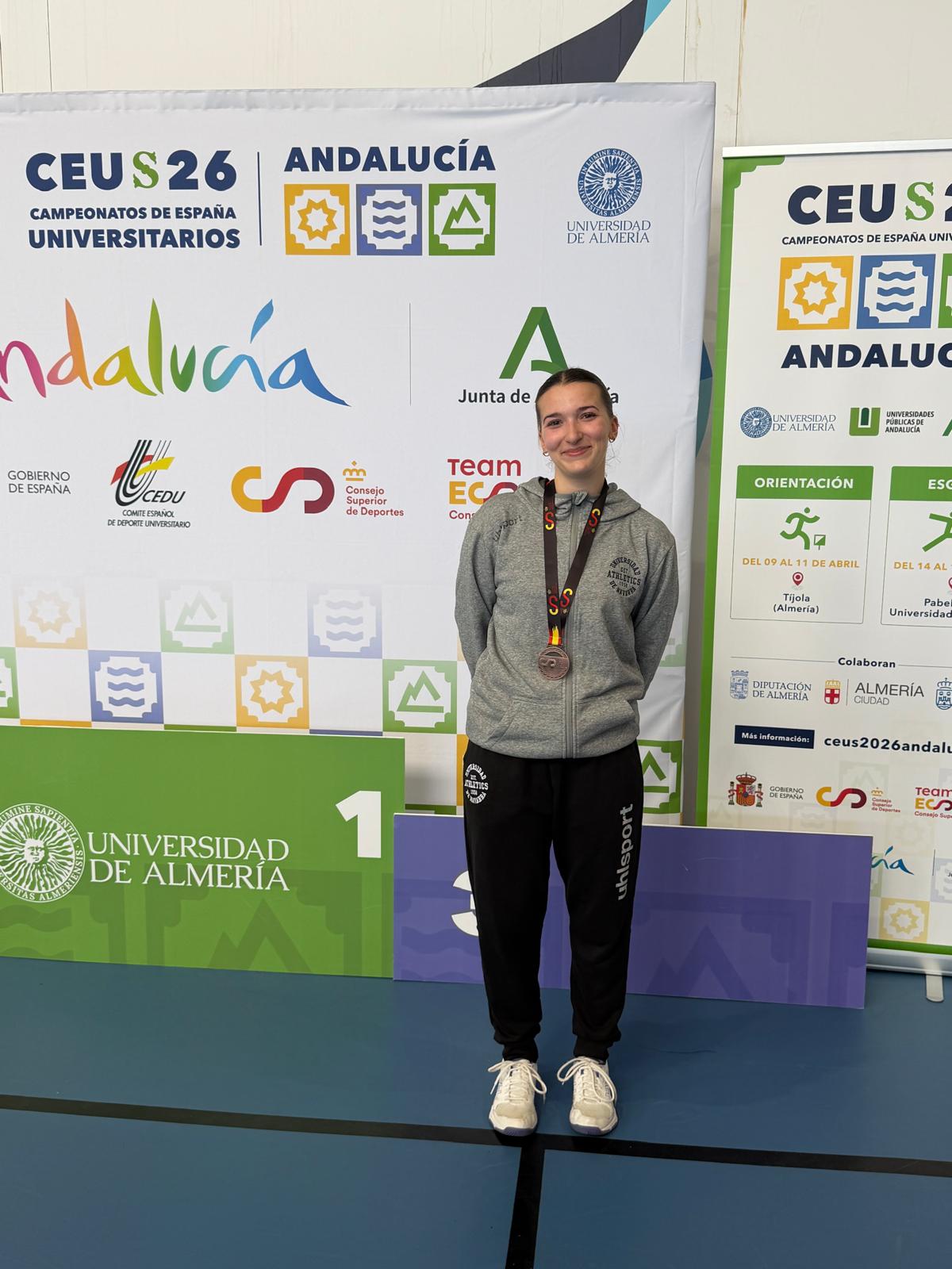 Por un lado, Sonia Rup, en su tercer año como estudiante del doble Grado de Derecho y Relaciones Internacionales, se subió al podio colgándose la medalla de bronce. Y, por otro lado, Irene Arregui, en su primer año de Comunicación Audiovisual, fue eliminada por su compañera de club en cuadro de 8, terminando en la 7ª posición.